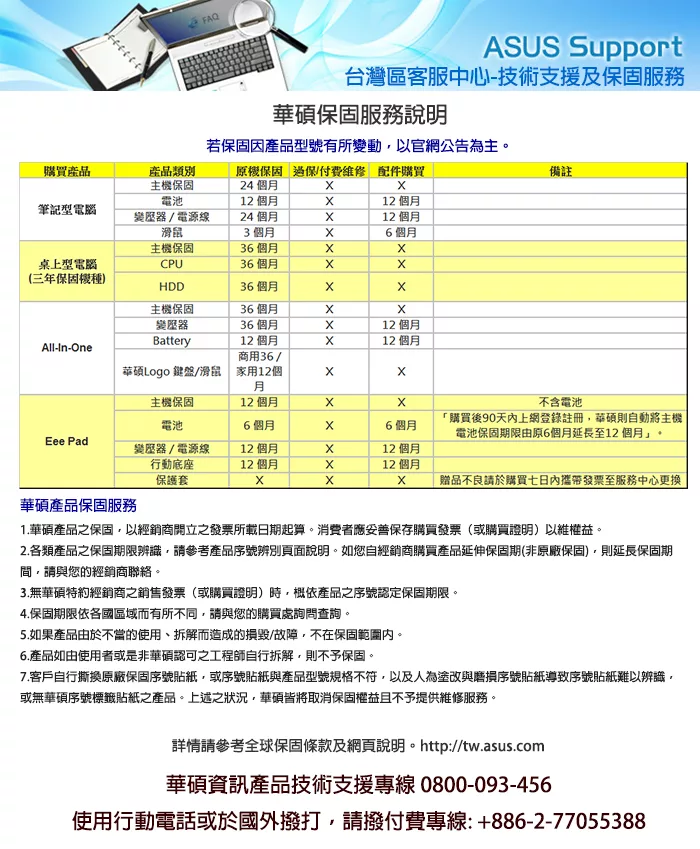 .asus 技術支援 0800-093-456 / 02-77055388 (手機專用)